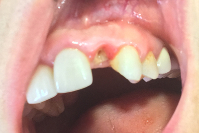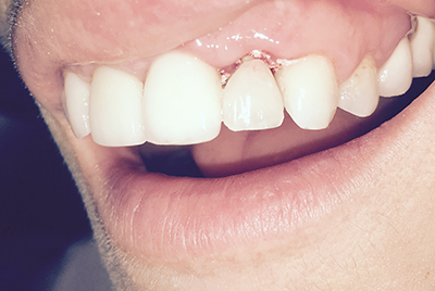 Στο συγκεκριμένο περιστατικό ο περιοδοντολόγος της κλινικής μας απέφευγε την χειρουργική προσπέλαση, τόσο για την εξαγωγή, όσο και για την τοποθέτηση του εμφυτεύματος, με αποτέλεσμα την διατήρηση της ακεραιότητας των όμορων ιστών.