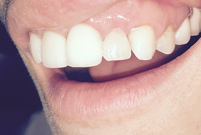 Αυτό έδωσε την δυνατότητα στην προσθετολόγος μας να αποδώσει ένα αποτέλεσμα που μιμείται την φυσιολογική αρχιτεκτονική των ιστών της περιοχής.
